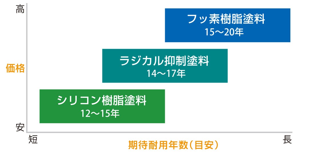 主な塗料種類と耐用年数